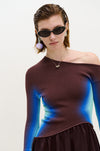 PH5 introduces engineered knits with integrated ruching that move with the body. Combined with lurex threads, these pieces shimmer with an iridescent quality, mimicking the glistening surface of water. The design creates a tactile experience, capturing fluidity in a transformative way.