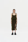 3D bubble wavy midi skirt with removable waistband. Signature wavy opening at hem.