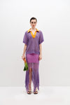 In this collection, the Lake Titicaca frog becomes a playful yet powerful symbol of the broader environmental message. Bold graphics of the frog are emblazoned across shirts, while serene, flowing dresses capture the fluidity of their endangered habitat. The collection contrasts these soft, languid silhouettes with structured, signature PH5 pieces, embodying the tension between fragility and resilience in nature.