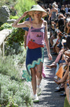 The spirit of activism is woven throughout the collection, with designs that merge utility and artistry. Trompe l’oeil utility artworks transform everyday items into symbols of protest—flower cuttings and tools peek out of faux pockets, evoking a sense of preparedness and action. Mixed media pieces incorporate textured, feathery cotton yarns to mimic the natural elements of grass and moss, further grounding the collection in the earth that sustains us.