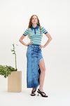 Denim print maxi skirt
