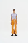 Trompe l'eoil artwork denim pants with invisible side pockets. Elasticated waistband