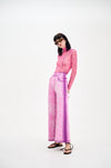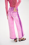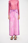 Denim print wide leg pants in sustainably sourced yarns.