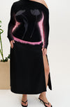 Needle punched mixed media maxi skirt with side slit