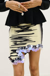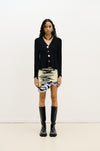 Signature wavy mini skirt in sustainably sourced yarns and recycled sequins. Side border details create a slimming optical illusion, while the statement print and wavy hem steal the show.