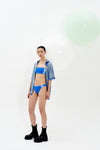 Denim print oversized polo top