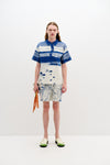The spirit of activism is woven throughout the collection, with designs that merge utility and artistry. Trompe l’oeil utility artworks transform everyday items into symbols of protest—flower cuttings and tools peek out of faux pockets, evoking a sense of preparedness and action. Mixed media pieces incorporate textured, feathery cotton yarns to mimic the natural elements of grass and moss, further grounding the collection in the earth that sustains us.