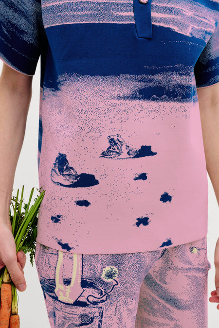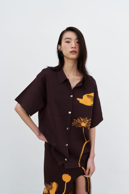 AMBER FLOWER PRINT OVERSIZED POLO SHIRT