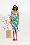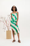 As the collection evolved, we looked forward to summer moments spent resting under trees in the park where the dappled sunlight filters through the leaves, creating a dynamic, ever-shifting play of light and shadow on the body. This imagery informs much of the collection, from the knitted jacquards to the delicate draping’s and gatherings of lightweight fabrics.