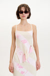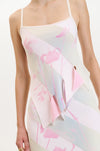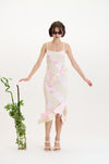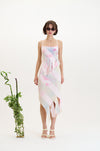 As the collection evolved, we looked forward to summer moments spent resting under trees in the park where the dappled sunlight filters through the leaves, creating a dynamic, ever-shifting play of light and shadow on the body. This imagery informs much of the collection, from the knitted jacquards to the delicate draping’s and gatherings of lightweight fabrics.