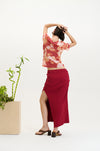 As the collection evolved, we looked forward to summer moments spent resting under trees in the park where the dappled sunlight filters through the leaves, creating a dynamic, ever-shifting play of light and shadow on the body. This imagery informs much of the collection, from the knitted jacquards to the delicate draping’s and gatherings of lightweight fabrics.