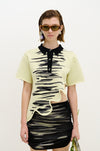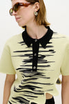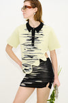 Ocean print wavy polo shirt. This piece is flashlight reflective, but very settled.