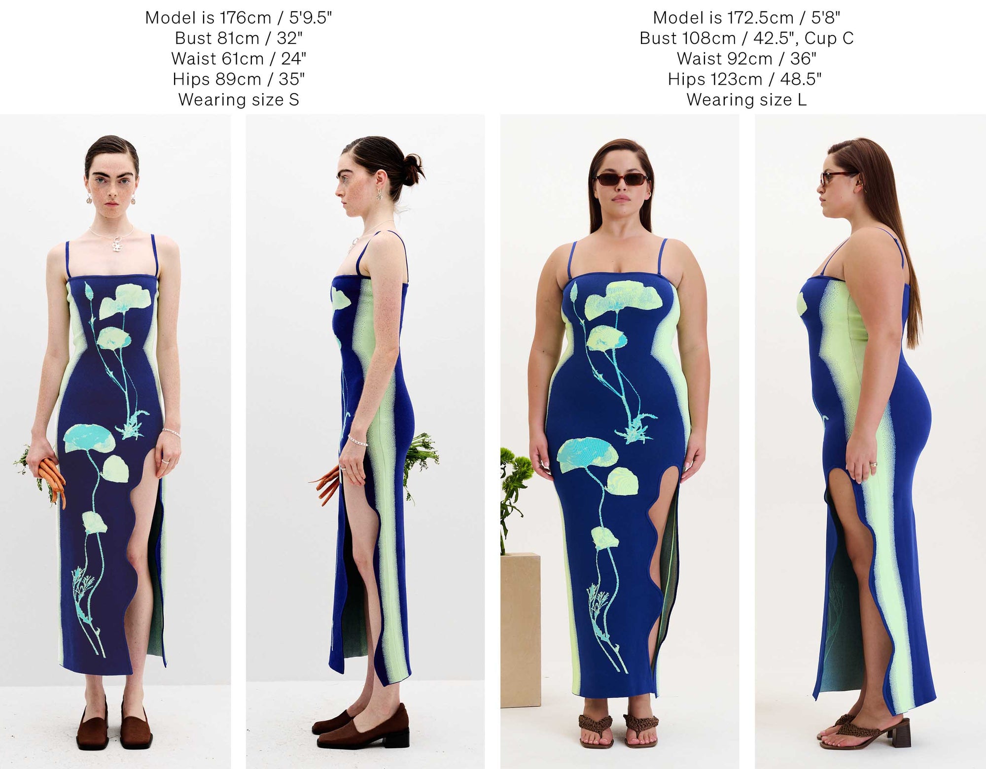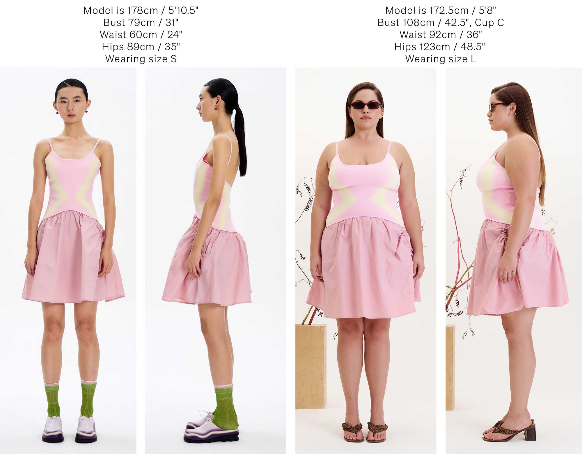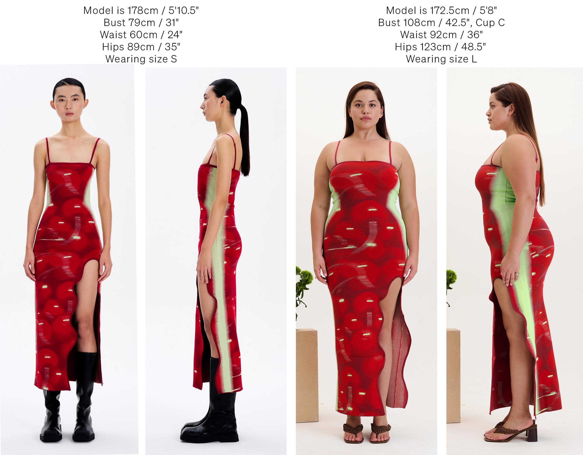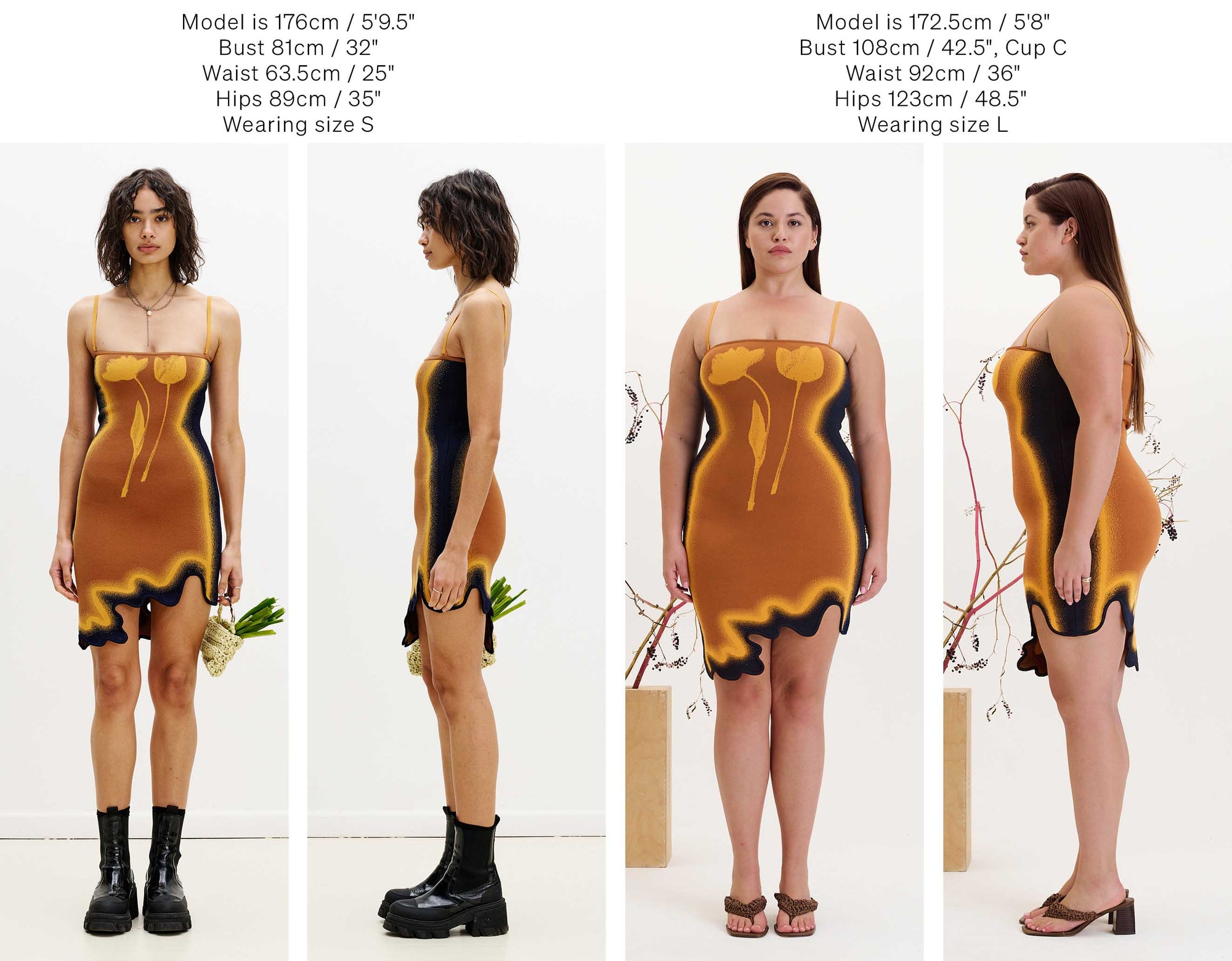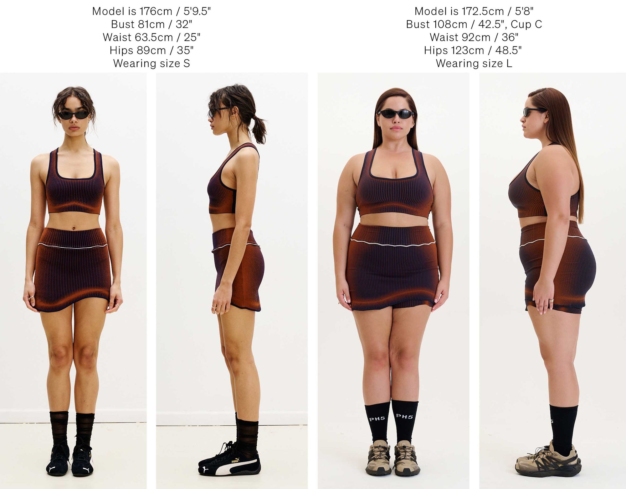 Below we have photographed some of our best selling silhouettes in size S & L for your reference.