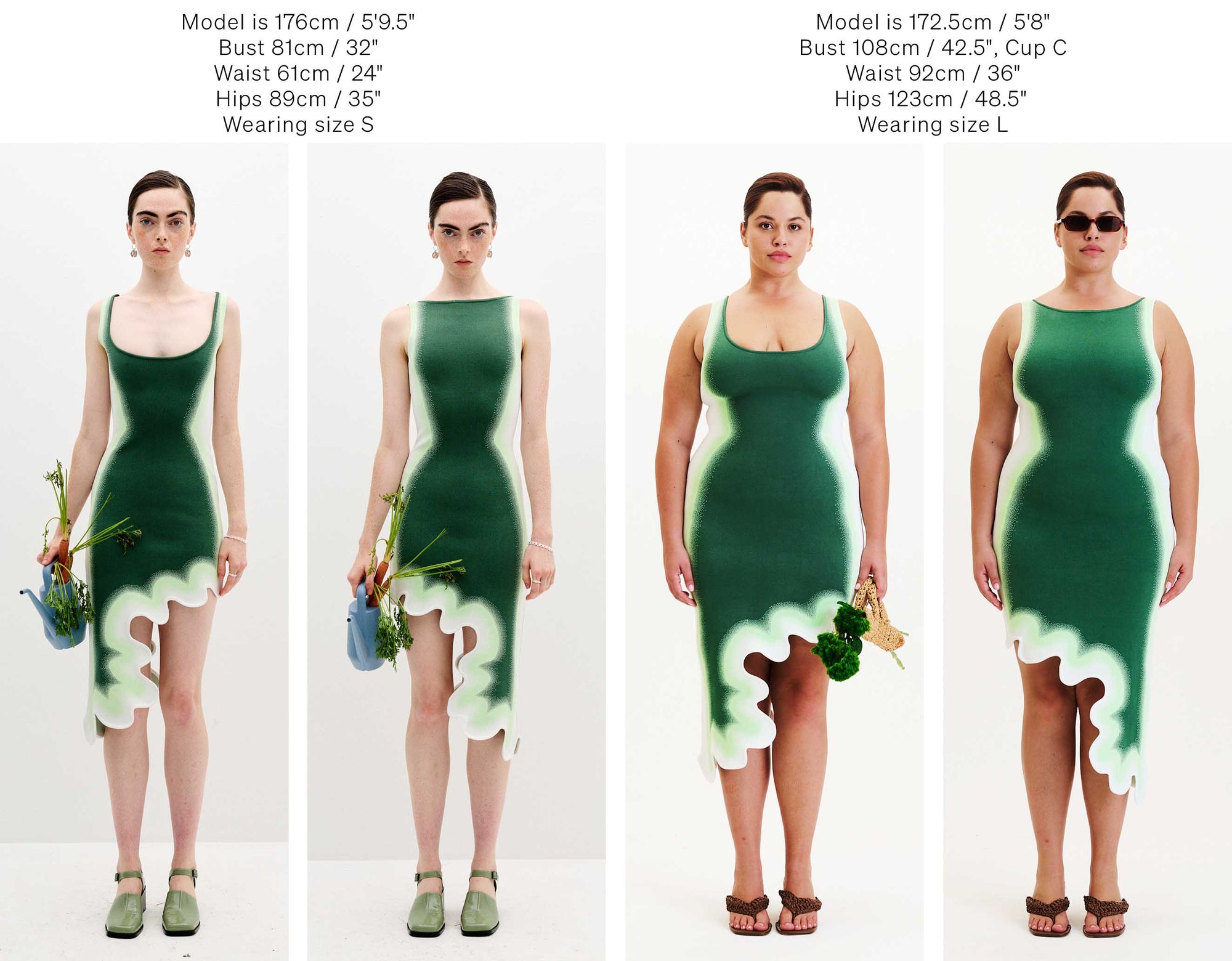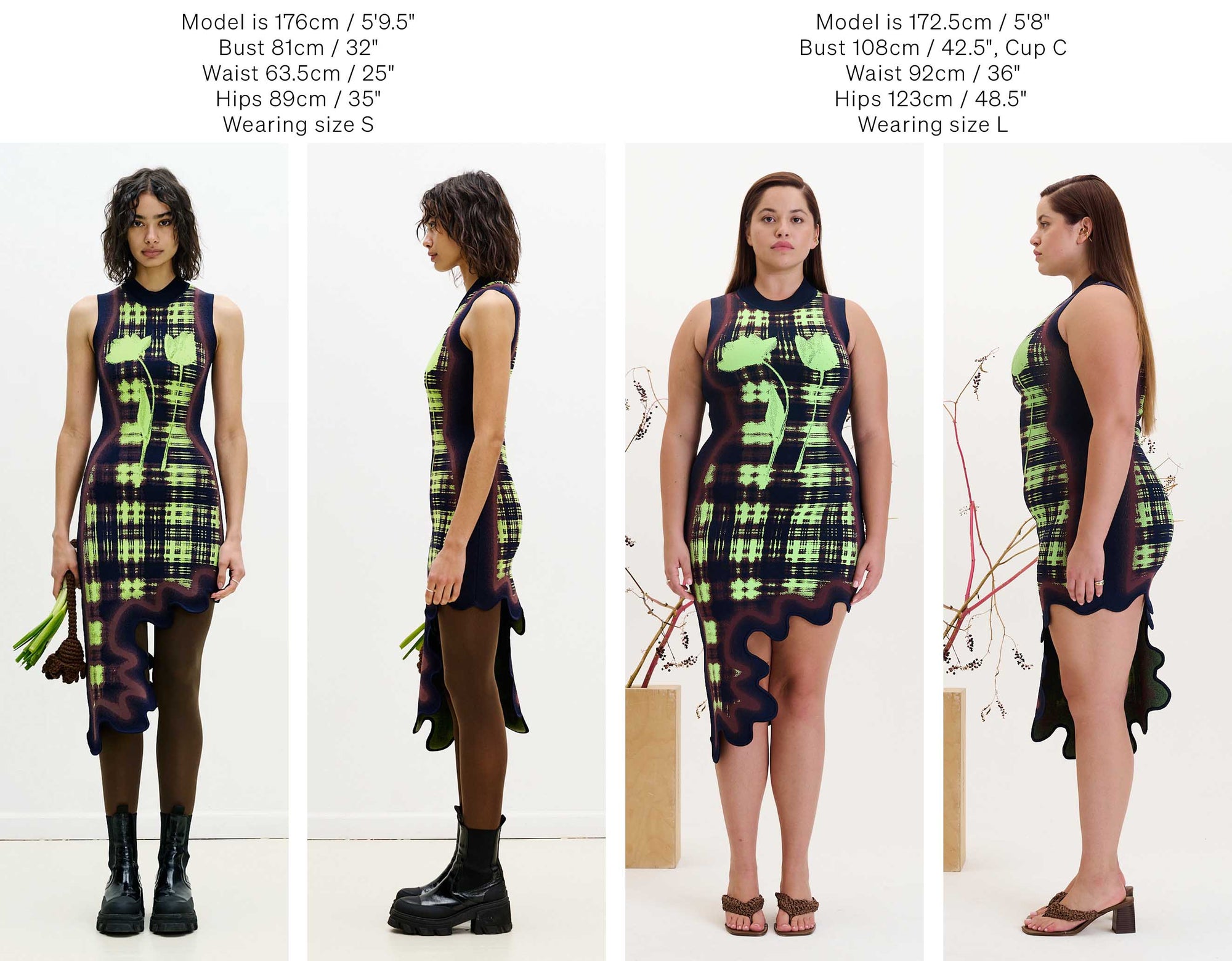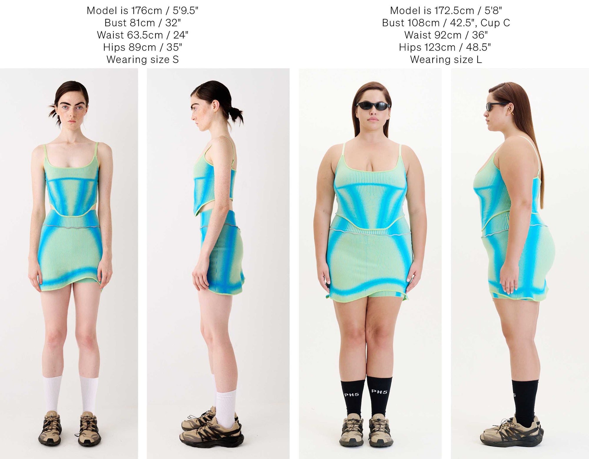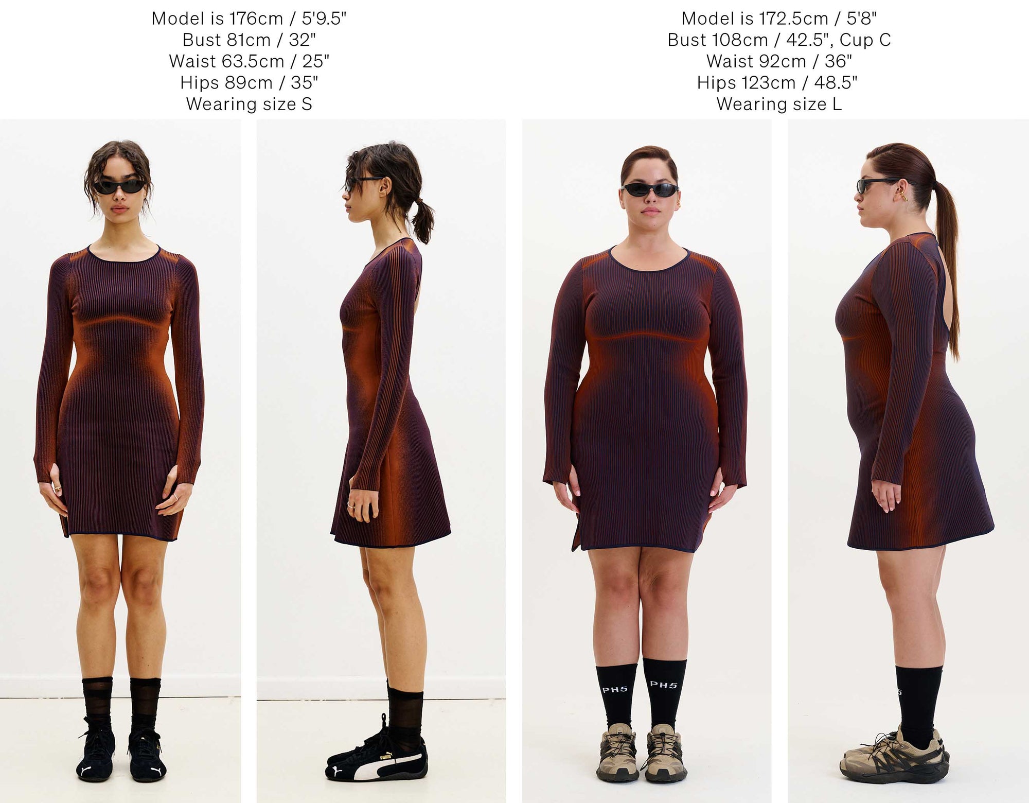 Below we have photographed some of our best selling silhouettes in size S & L for your reference.
