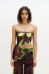 Flower gradient print wavy bra top