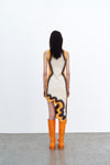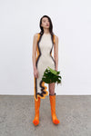 Signature wavy asymmetric dress in sustainably sourced yarns. Side border details create a slimming optical illusion.
