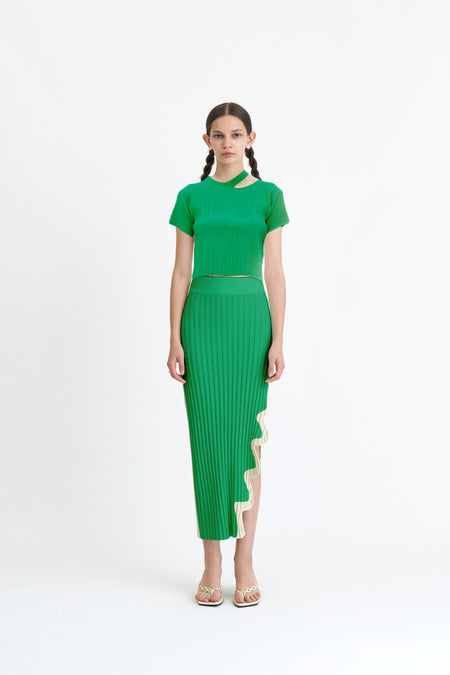 JELA PLEATED MIDI SKIRT WITH WAVY SIDE SLIT