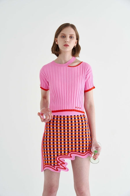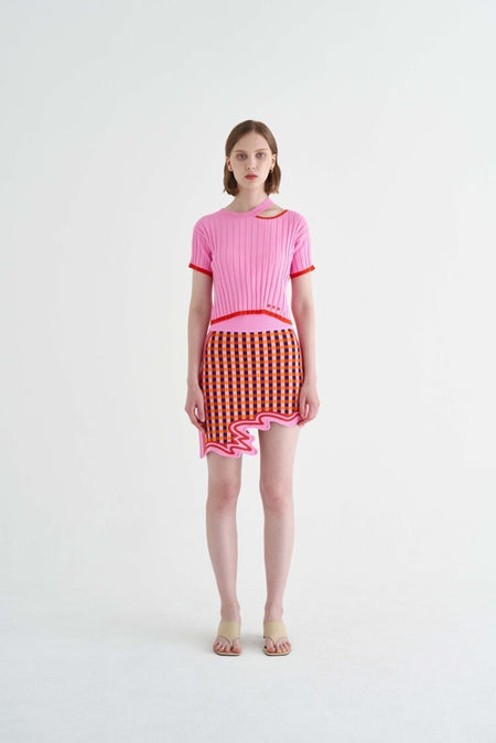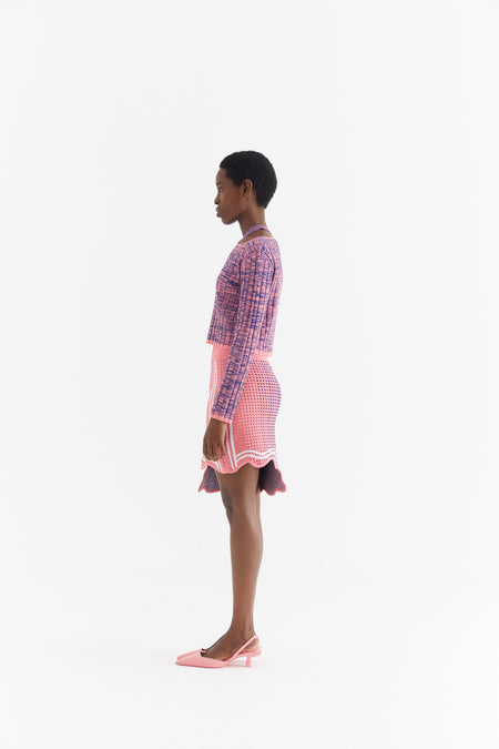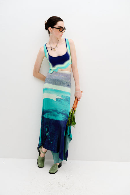 LILY FLOWER PRINT WAVY MIDI SKIRT