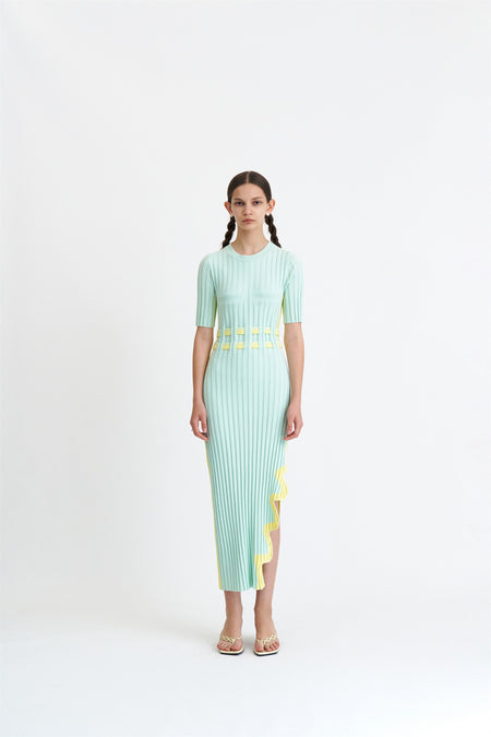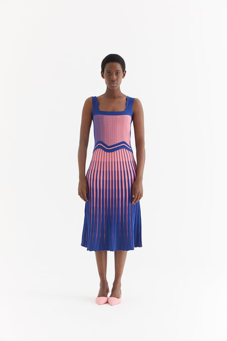 JODIE PLEATED LONG DRESS WITH WAVY SIDE SLIT