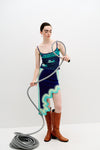 In this collection, the Lake Titicaca frog becomes a playful yet powerful symbol of the broader environmental message. Bold graphics of the frog are emblazoned across shirts, while serene, flowing dresses capture the fluidity of their endangered habitat. The collection contrasts these soft, languid silhouettes with structured, signature PH5 pieces, embodying the tension between fragility and resilience in nature.