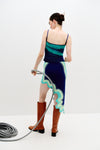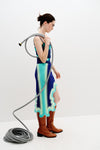The spirit of activism is woven throughout the collection, with designs that merge utility and artistry. Trompe l’oeil utility artworks transform everyday items into symbols of protest—flower cuttings and tools peek out of faux pockets, evoking a sense of preparedness and action. Mixed media pieces incorporate textured, feathery cotton yarns to mimic the natural elements of grass and moss, further grounding the collection in the earth that sustains us.
