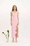 As the collection evolved, we looked forward to summer moments spent resting under trees in the park where the dappled sunlight filters through the leaves, creating a dynamic, ever-shifting play of light and shadow on the body. This imagery informs much of the collection, from the knitted jacquards to the delicate draping’s and gatherings of lightweight fabrics.