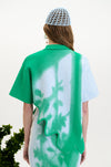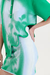 As the collection evolved, we looked forward to summer moments spent resting under trees in the park where the dappled sunlight filters through the leaves, creating a dynamic, ever-shifting play of light and shadow on the body. This imagery informs much of the collection, from the knitted jacquards to the delicate draping’s and gatherings of lightweight fabrics.