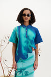 Window print wavy polo shirt