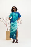 As the collection evolved, we looked forward to summer moments spent resting under trees in the park where the dappled sunlight filters through the leaves, creating a dynamic, ever-shifting play of light and shadow on the body. This imagery informs much of the collection, from the knitted jacquards to the delicate draping’s and gatherings of lightweight fabrics.