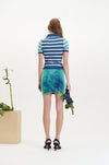 As the collection evolved, we looked forward to summer moments spent resting under trees in the park where the dappled sunlight filters through the leaves, creating a dynamic, ever-shifting play of light and shadow on the body. This imagery informs much of the collection, from the knitted jacquards to the delicate draping’s and gatherings of lightweight fabrics.