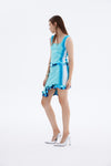 Signature wavy mini skirt in sustainably sourced yarns and recycled sequins. Side border details create a slimming optical illusion, while the statement print and wavy hem steal the show.