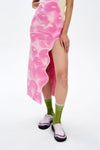 Seasonal knitted jacquards are key to the collection, with oversized motifs of cherries in vivid color, featuring a mix of blurred piles and abstract splashes of cherry juice — as though the fruit itself has burst open, spilling its rich, vibrant hues across the fabric. The tactile, playful nature of these designs infuses the collection with a joyful spirit that we always try to have in the face of this environmental crisis.