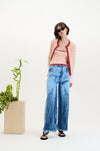 Flowers, too, take on new dimensions this season. Hand-crocheted 3D blooms appear throughout the collection, their forms enhanced by subtle changes in yarn that create an integrated sense of shadow, as if lit by sunlight from above. This motif continues in striped styles where a single flower, knitted directly into the fabric, etched in soft relief, quiet, sculptural, and sun-touched.