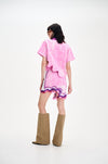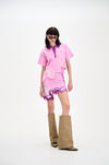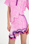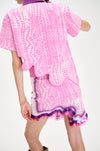 Signature wavy mini skirt in sustainably sourced yarns and recycled sequins. Side border details create a slimming optical illusion, while the statement print and wavy hem steal the show.