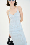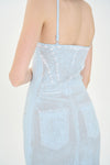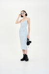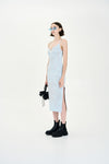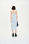 Denim print wavy tank dress with side slit