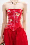 The spirit of activism is woven throughout the collection, with designs that merge utility and artistry. Trompe l’oeil utility artworks transform everyday items into symbols of protest—flower cuttings and tools peek out of faux pockets, evoking a sense of preparedness and action. Mixed media pieces incorporate textured, feathery cotton yarns to mimic the natural elements of grass and moss, further grounding the collection in the earth that sustains us.